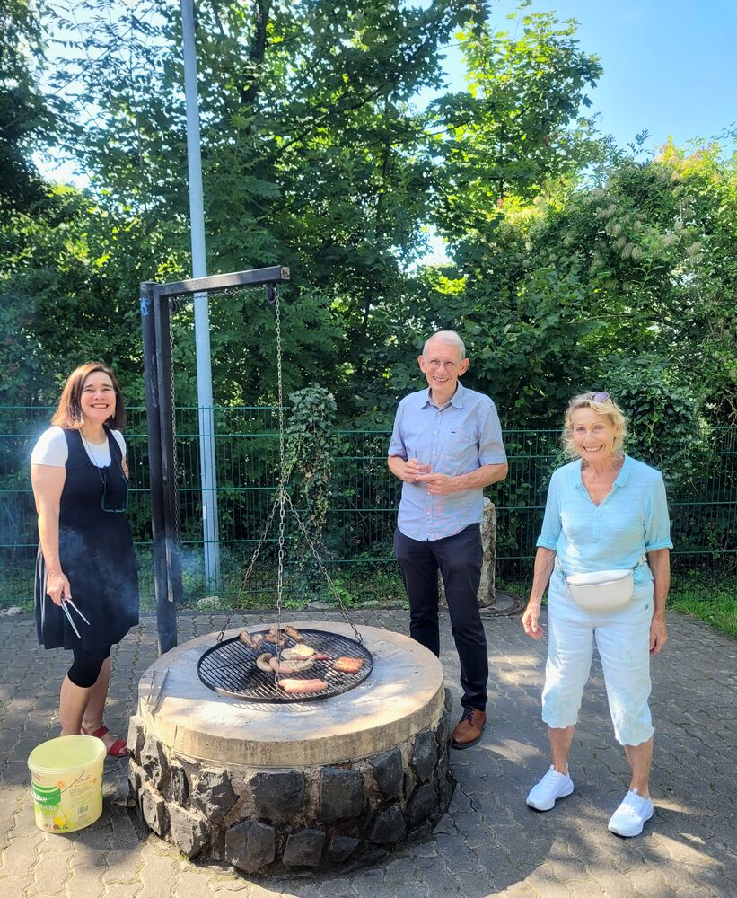 Ulrike Donié, Stephan Donié und Geza Stuip kümmern sich um das Grillgut SPD Linz feiert trotz politischer Herausforderungen: "Wir lassen uns nicht entmutigen"